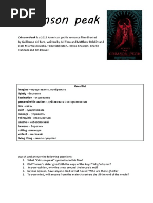 Crimson peak book pdf free download Crimson peak book pdf free download. In Crimson Peak acclaimed filmmaker Guillermo del Toro returns to the genre he helped define with a powerful blend of psychological thriller gothic horror and seductive romance. See more awards Learn more Edit Edith Cushings mother died when she was young but watches over her.